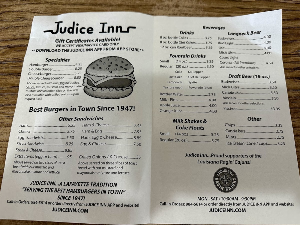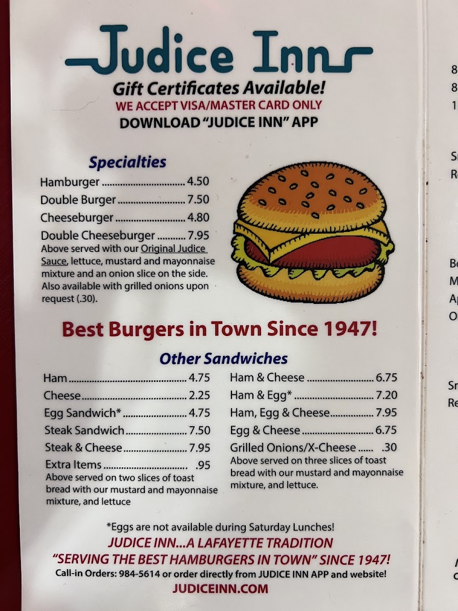 Served with our Original Judice Sauce, lettuce, mustard and mayonnaise mixture and an onion slice on the side. No other condiments are available!